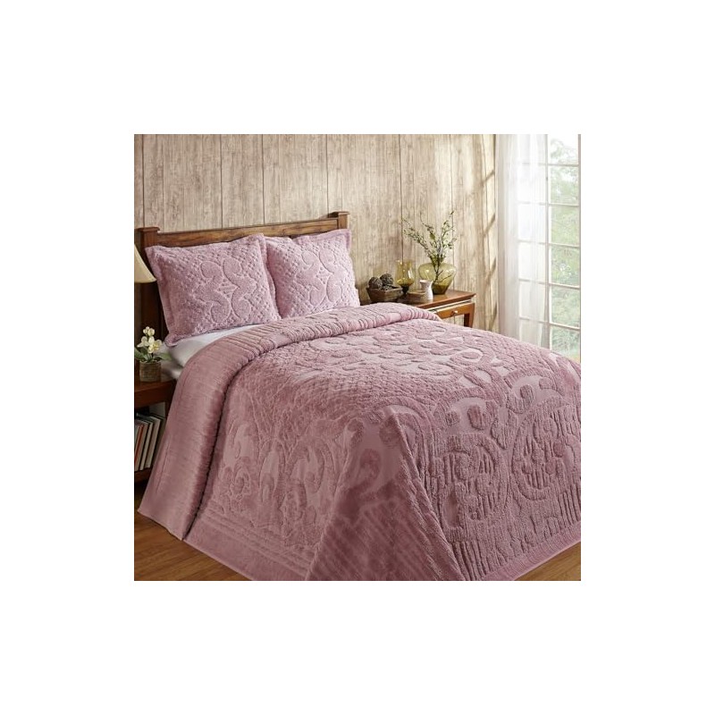 - All Seasons 2 Piece 100% Cotton Tufted Chenille Bedspread Coverlet Set King Size Heirloom Quality in Medallion Design | Blush Pink Color Western Bedding Soft Plush Cozy Aesthetic Look