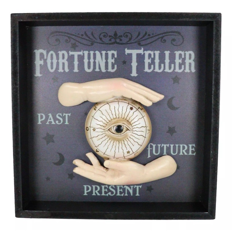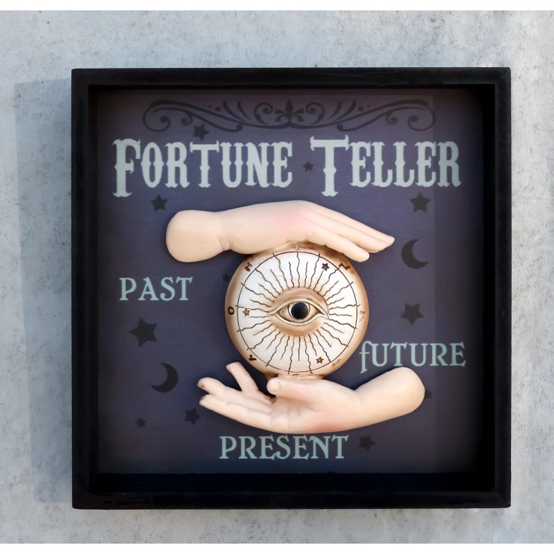 • Perfect for any witch or aspiring divinator! Cast in the finest resin before being carefully hand-painted, this Hamsa Palms With All Seeing Eye sits within a black frame. Flanked by a purple hue, surrounded by stars and celestial imagery, the picture reads "PAST, PRESENT, FUTURE and FORTUNE TELLER".