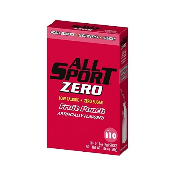 All Sport ZERO Sticks, Low Calorie, ZERO Sugar, Electrolyte Sports Drink Mix, Vending Pack (Fruit Punch, Pack of 10 (Vending Pack))