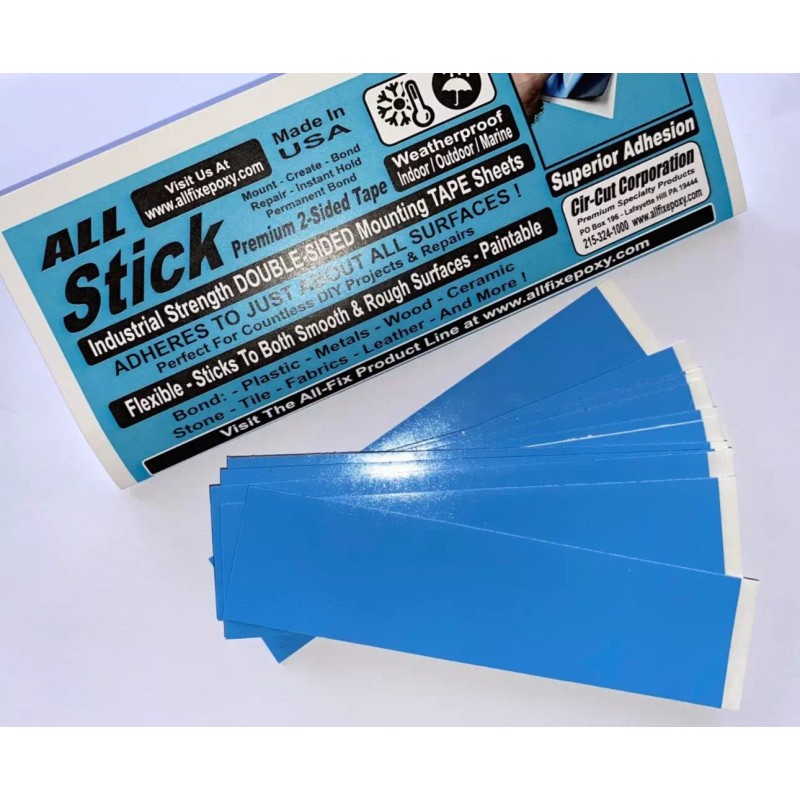 All-Stick premium heavy duty mounting tape is a space age double-sided bonding product that that joins materials in an instant! Unique sheet design for custom projects and applications. Provides permanent long lasting weather proof bonds to all types of materials: ceramic, plastic, stone, metal, wood, brick, laminates, composites, fabric, leather, glass and many more. All-Fix premium heavy duty mounting tape is specially designed for both indoor and outdoor applications. The unique flexible tape will adhere to both smooth and rough surfaces.
