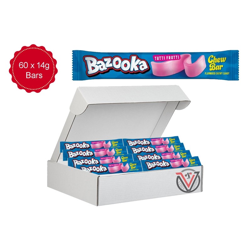 All Sweet Collection Bazooka Chew Bars 14g (60 x 14g Bars (Full Box), Tutti Frutti)