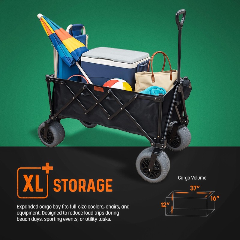 - Extra Large Storage - Expanded cargo bay fits full-size coolers, chairs, and equipment. Designed to reduce load trips during beach days, sporting events, or utility tasks.