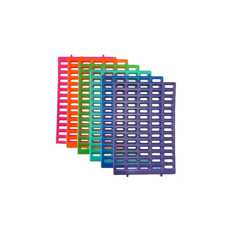 - These mats are made with a softer, more flexible plastic and have 2 extra tabs on the sides to secure to a wire floor bottom. Tabs on the resting mats easily fit under wire to keep the mat in place