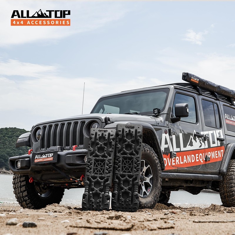 - 【Heavy-Duty Design】Elevating your off road adventures with ALL-TOP Traction Boards, essential 4X4 accessories crafted from 100% Reinforced Nylon for exceptional toughness, strength, and resistance to heat, UV, and corrosion. The U-shape elastic design ensures stability and a strong grip, making them unbreakable for Overland and Recovery in extreme weather (-13℉ to 140℉).