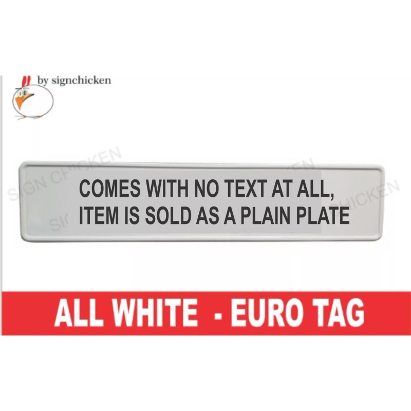 ALL WHITE Euro, European License Plate with Embossed Border / NO TEXT