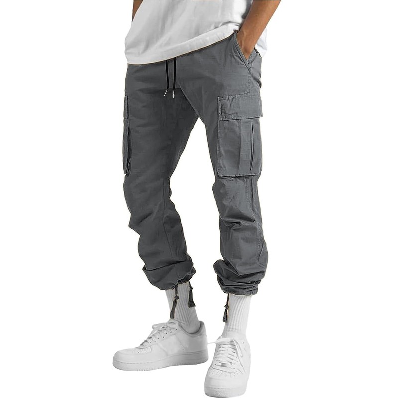 Mens Casual Joggers Pants Hiking Drawstring Chino Cargo Pants Lightweight Outdoor Twill Track Jogging Sweatpants Cotton Loose Straight Leg Pants