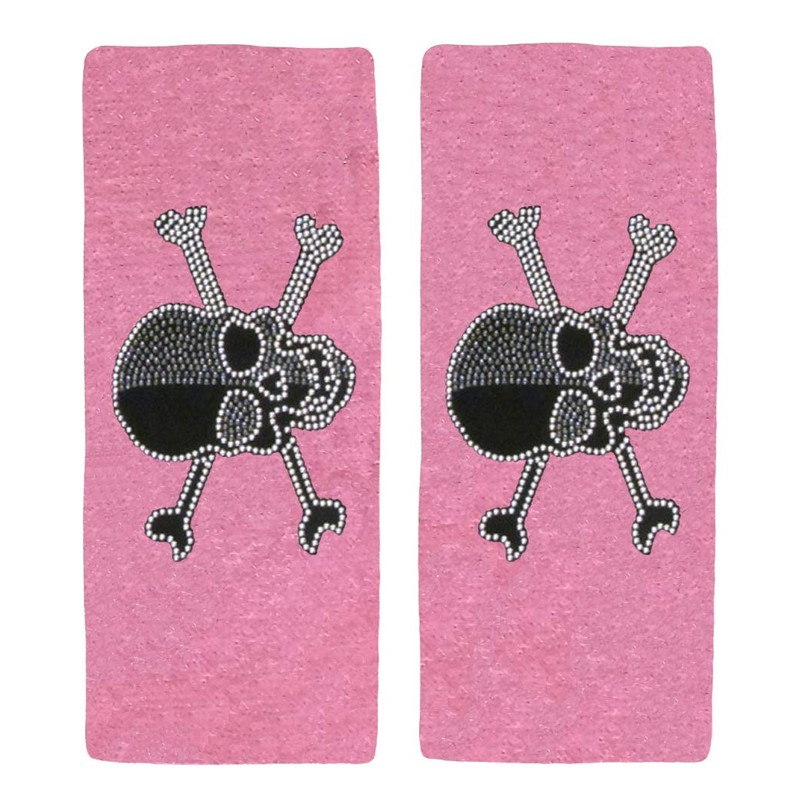 ALLBrand Crystal Studded Bling Rhinestone Car Truck Seat Covers Headrest & Seat Belt Shoulder Pad Cushion - 4 Pcs Set (Gray Skull-Pink)