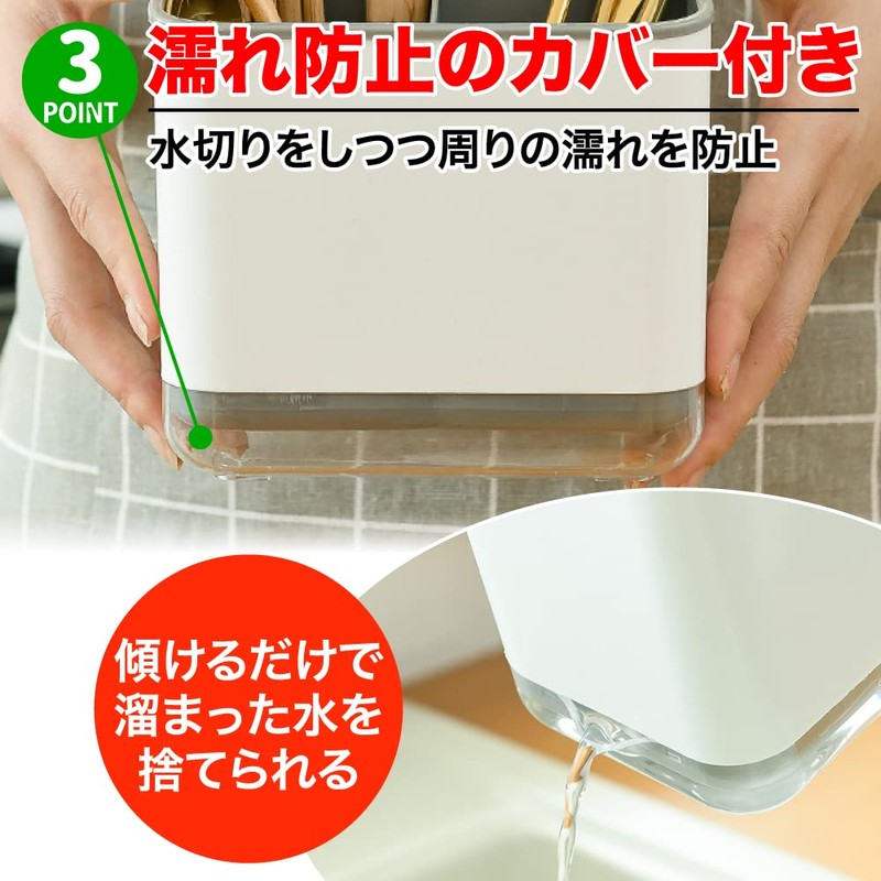 - (Includes a cover to prevent wet) The bottom is attached to the cover, so you can drain it after washing and prevent it from getting wet. You can also tilt it to discard the accumulated water