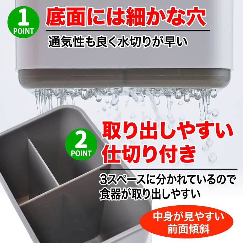- (Easy Access Divider) Divided into 3 spaces for easy access to flatware. In addition, the front is low and sloped to make it easy to see what you stored