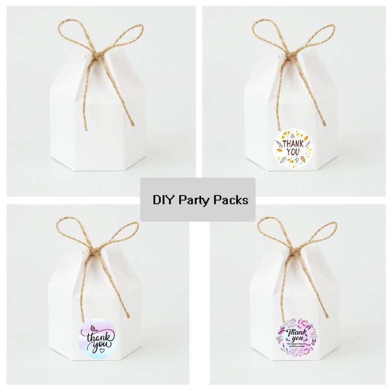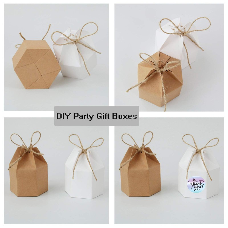 Allbusky high quality paper candy box features the shape of hexagon, and enhance the touch of elegance. Blank body design and comes with the hemp ropes, so you can DIY it youself. These favor gift boxes are perfect for any occasions, like wedding, birthday party, engagement, anniversary and other special events.