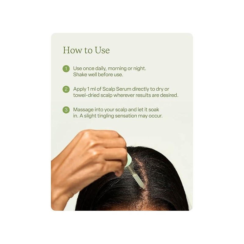 How to Use Apply daily to wet or dry hair, morning or night. Shake the bottle well, then apply serum directly to the scalp, focusing on problem areas. Gently massage and allow it to absorb—no rinse needed!