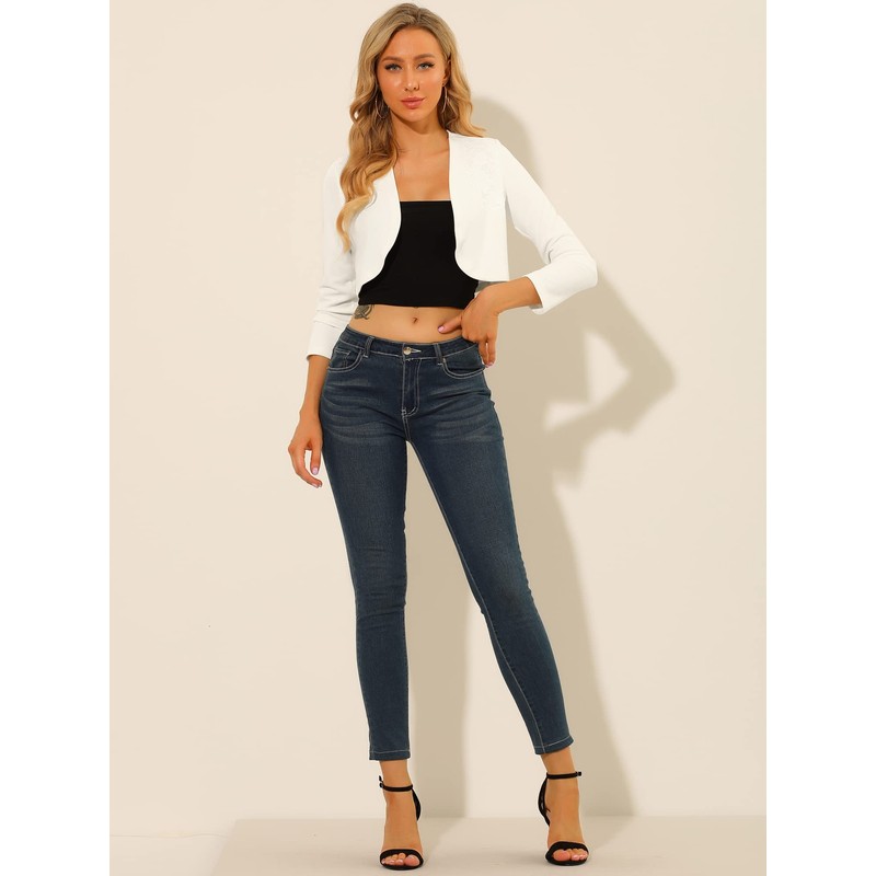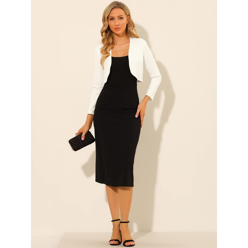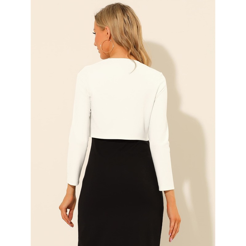 Allegra K Women's Elegant Bolero Shrugs Lace Insert Business Office Open Front Crop Cardigan X-Small White
