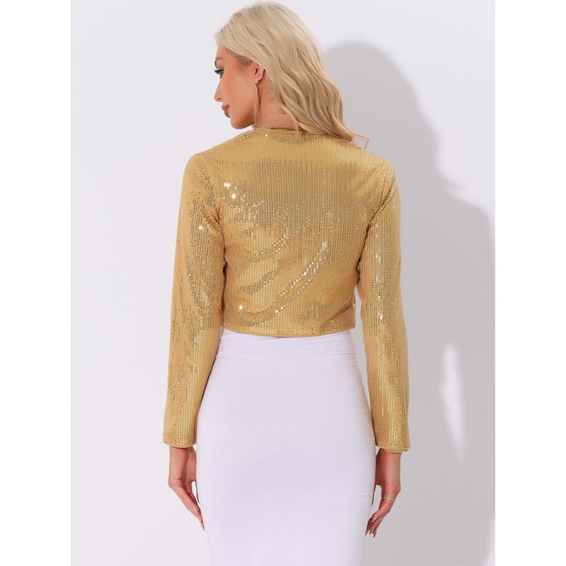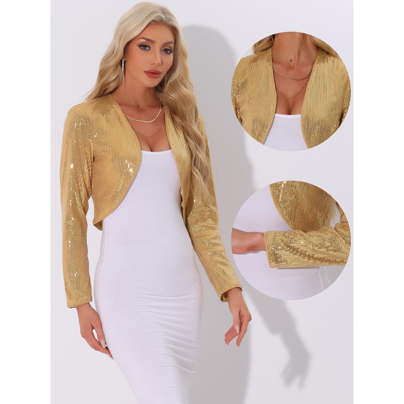 Allegra K Women's Sequin Jacket Party Open Front Short Glitter Bolero, gold