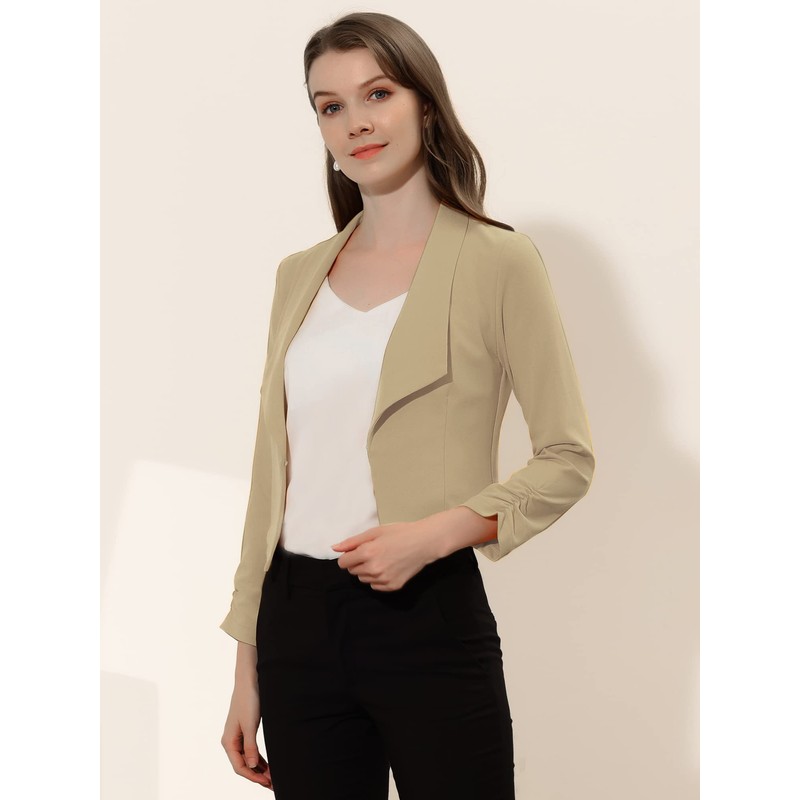 Allegra K Women's Work Office Cropped Blazer Notched Lapel Long Sleeve Open Front Short Jacket Khaki Medium