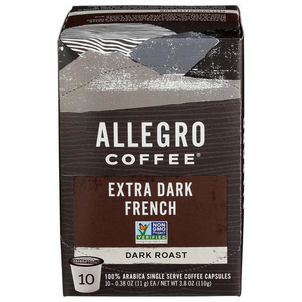 Allegro Coffee, Coffee French Roast Extra Dark Pods 10 Count, 3.8 Ounce