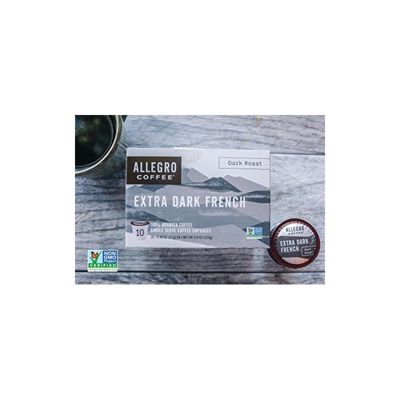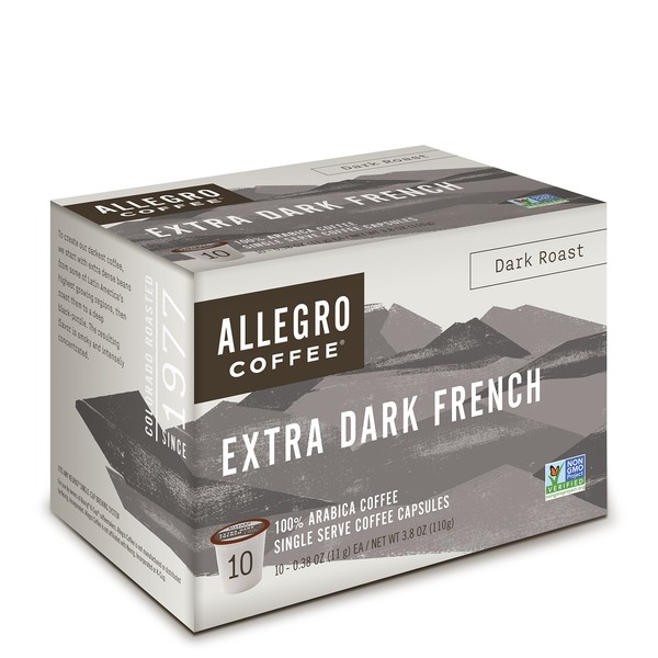 Allegro Coffee, Coffee French Roast Extra Dark Pods 10 Count, 3.8 Ounce
