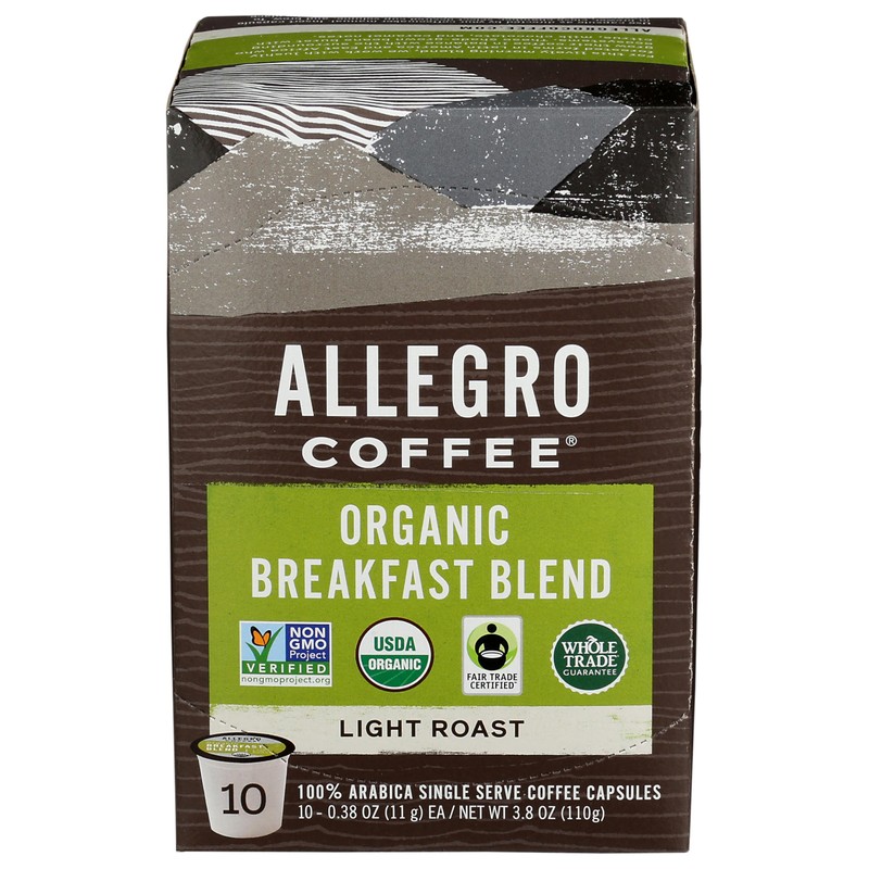 Allegro Coffee, Coffee Breakfast Blend Pods Organic 10 Count, 3.8 Ounce