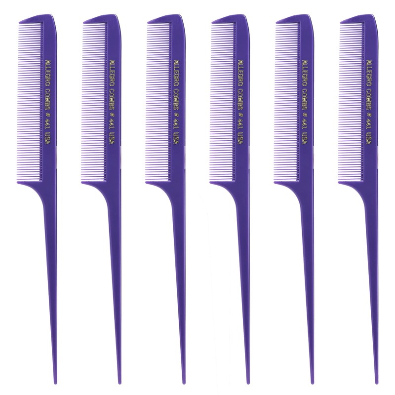 Allegro Combs 441. 8.5 In. Rat Tail Combs Pintail Braiding Or Parting Fine Teeth Rattail Hair Picks Combs Set For Hair Styling USA. 6 Pc. (PURPLE)