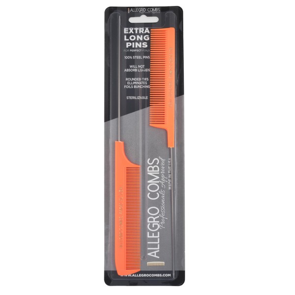 - EXTRA LONG PINS XL METAL PIN COMBS STAINLESS STEEL - Long tail foiling combs with rounded metal tip to easily part your hair. Two long tail foiling comb with different teeth types on each comb. Made in the USA. Hair foils combs. Extra long metal pins enables perfect foils. Dimension of the longest : L 9.75 x W 0.92 x 0.21 inches and of shorter comb: L 9.4 x 0.9 x 0.19 inches. These combs are perfect to be used with the longest aluminum foil sheets.