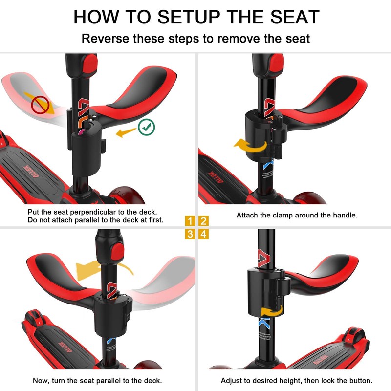 - SIT AND SCOOT 2 IN 1 – The attachable seat can be used for some younger kids who have not yet enough confidence to scoot and play it as a ride-on toy. On top of that, 5 stage T-bar accommodates growing children.