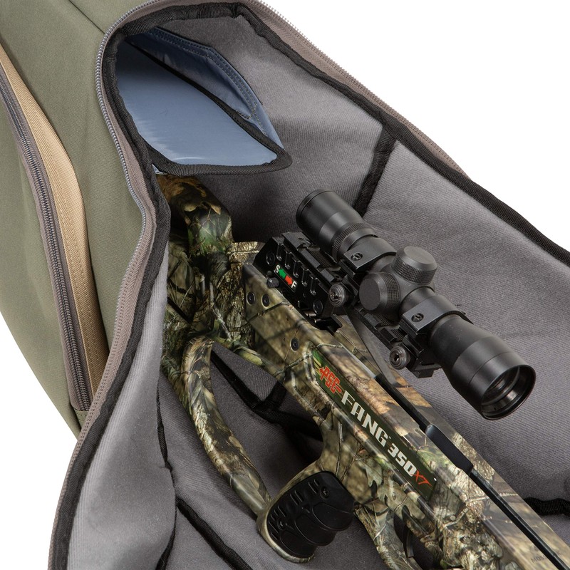 Allen Company Titan Copperhead Crossbow Case - Tricot Design - Fits 15-Inch Scoped Narrow Limb Crossbows - Pockets for Bolts, Quivers, and Other Archery Accessories - Olive/Tan - 38" x 16"