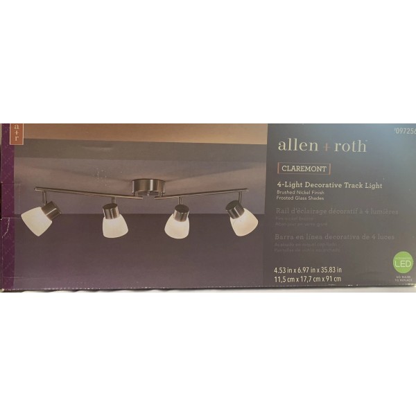 allen + roth, "Claremont" 4-Light Brushed Nickel Dimmable LED Track Light Bar