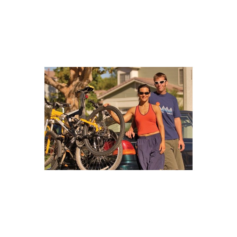 No roof rack, no problem with the 102DB Deluxe Two Bike Carrier from Allen Racks. This simple, sturdy bike carrying system fits most sedans, hatchbacks, minivans, and SUVs via a single configuration design that eliminates setup hassles and headaches during installation. The rack comes fully assembled, and mounts to your vehicle in seconds. Twelve-inch long carry arms easily accommodate up to two bikes, and a patented individual tie-down system secures and protects your bicycles. Also includes a manufacturer's lifetime warranty on workmanship and materials.