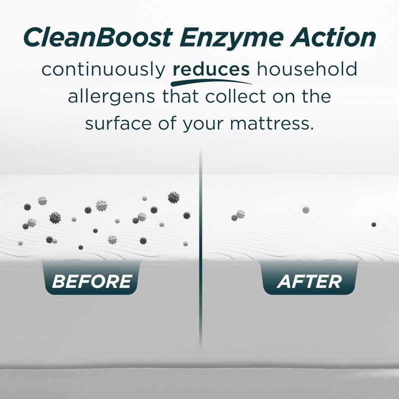 - CLEANBOOST TECHNOLOGY enzyme action continually reduces household particles for a cleaner bed.