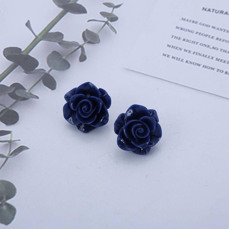 Allereya Boho Blue Rose Earrings Rose Floral Stud Earrings Enamel Flower Earrings Wedding Flower Stud Earrings Jewelry for Women