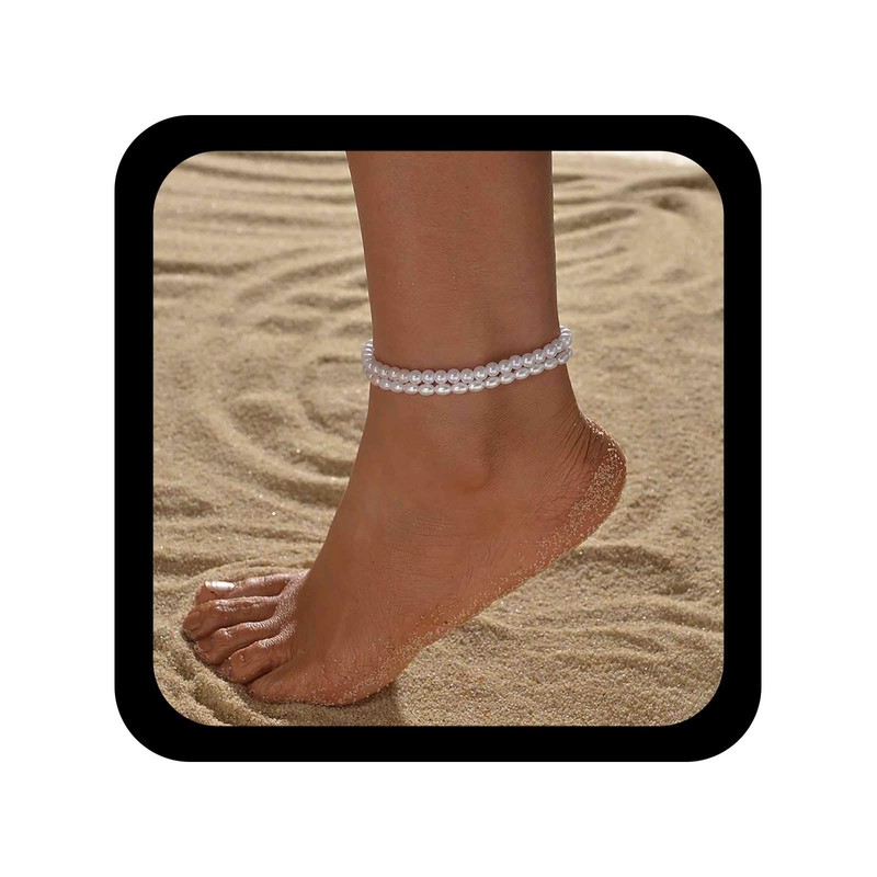 Allereya Boho Weiß Perle Fußkettchen Perlen Perlen Fußkettchen Elastische Per...