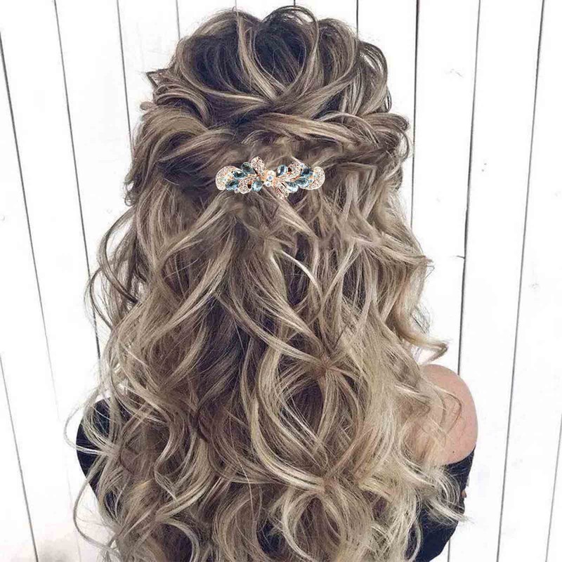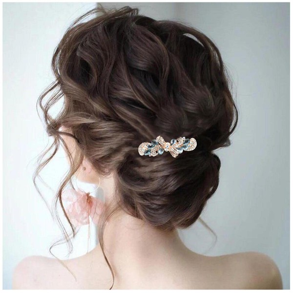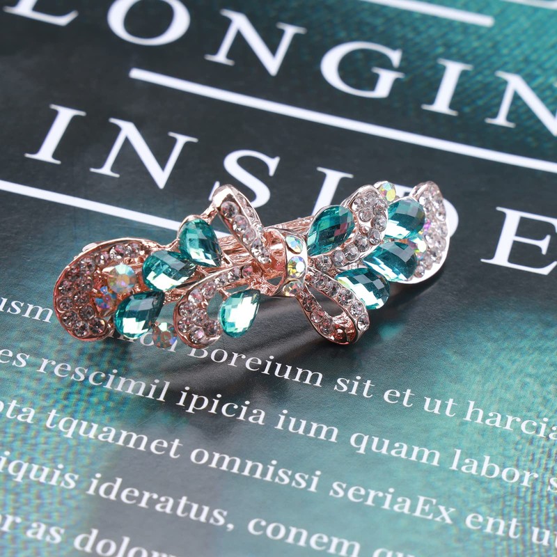 Allereya Crystal Hair Clip Hair Clip Green Rhinestone Hair Clip Crystal Wedding Headpiece Decorative CZ Head Clip Headpiece Bridal Hair Accessories for Women and Girls Gifts