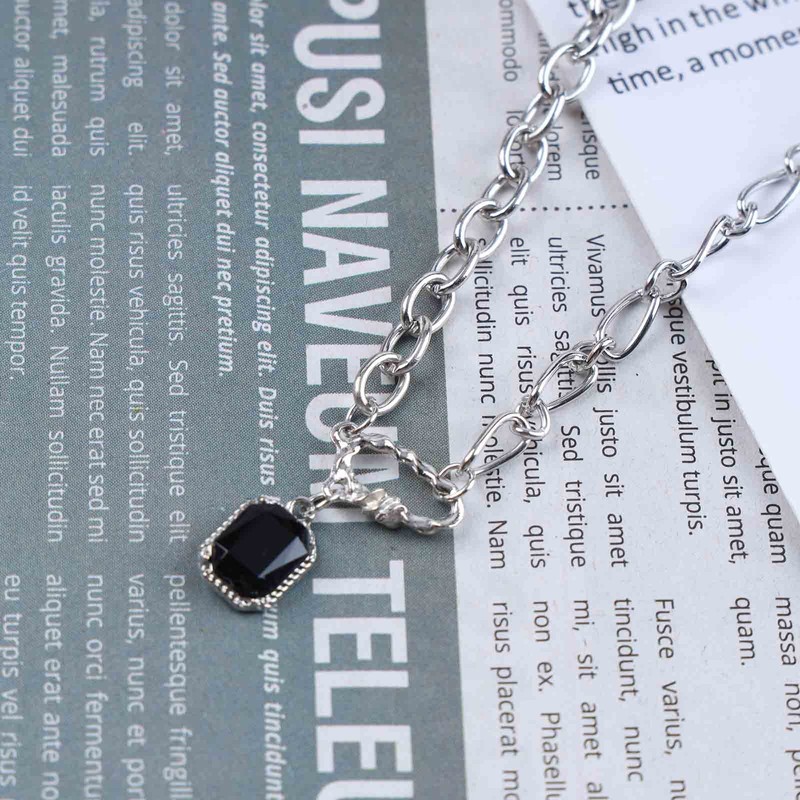 - Square necklace made of black crystal. Length: 40 + 5 cm extension chain, adjustable, suitable for most people.