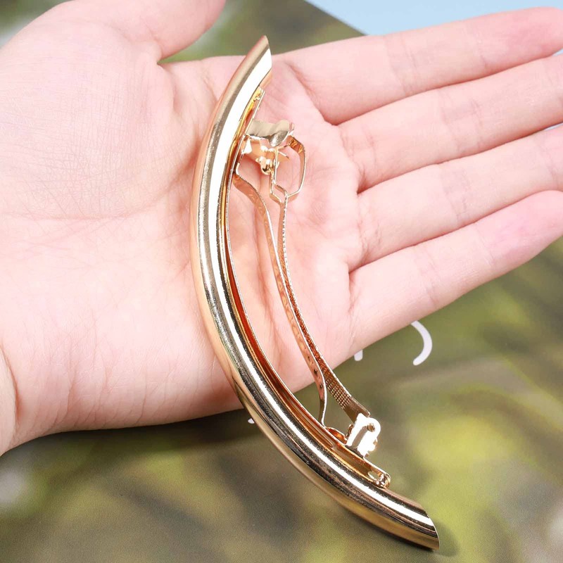 Allereyae Simple Hair Clips Curved Clip Barrette Gold Metal Hair Barrettes Long Bar Hairclips Barrette Decorative Metal Hair Accessories Jewelry for Women(Gold2)
