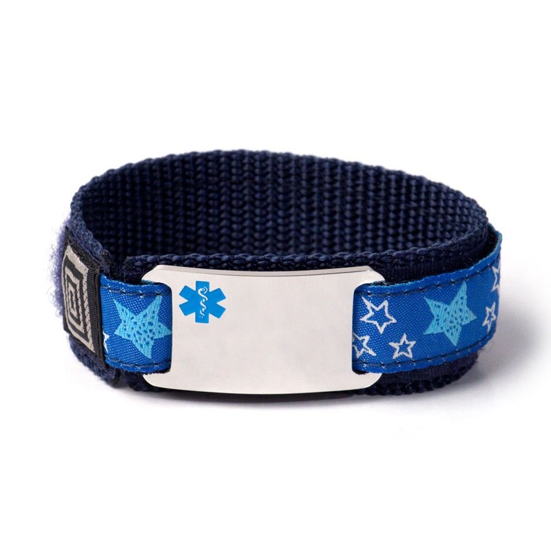 Allergic to Soy Kids Sport Medical ID Alert Bracelet with Blue Emblem for Children. Size 6.5" Max.