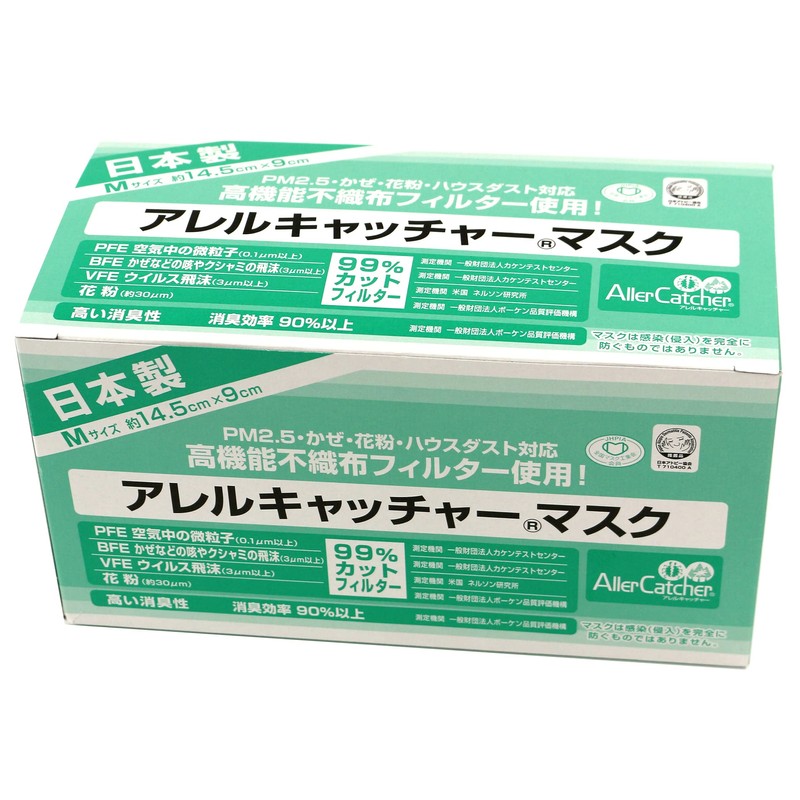 Allergy catcher mask uses 99% filter for 0.1μm particles.