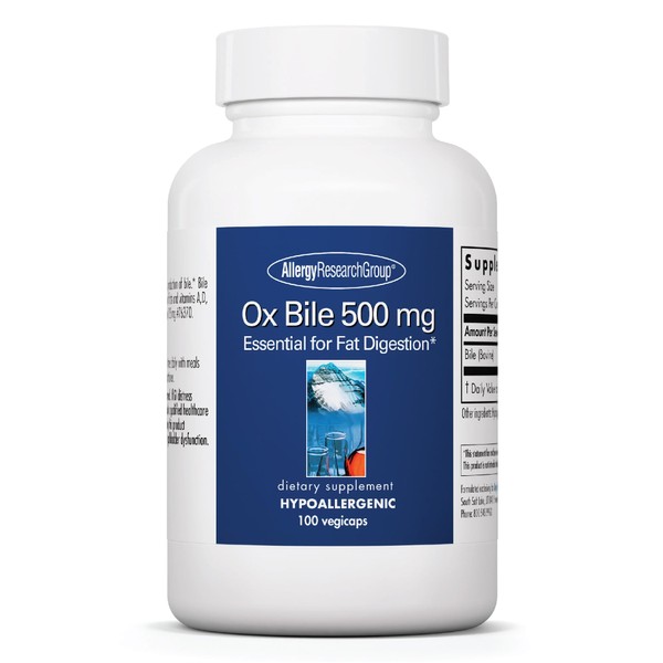 Allergy Research Group Ox Bile 500mg - Ox Bile Supplements for Gallbladder & Liver Support, Bile Salts for Women and Men, Supports Cleanse, Fat Digestion & Digestive Health - 100 Capsules