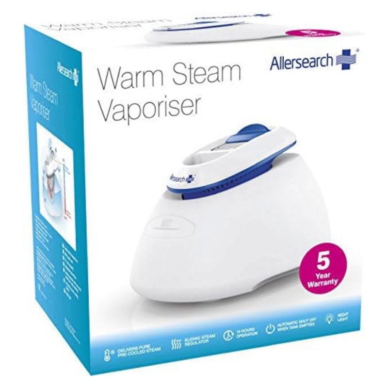 Suitable for use with children of all ages, the Allersearch Warm steam Vaporiser emits steam that is 25% cooler than conventional vaporisers.