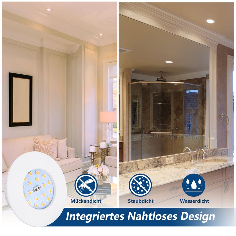 - Protection class IP44: waterproof IP44 LED recessed spotlight, ideal for bathrooms, kitchens, living rooms, porches and hallways.