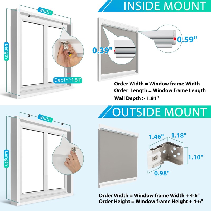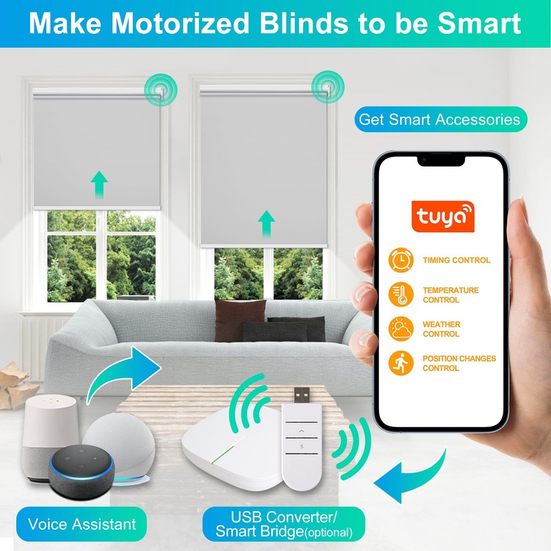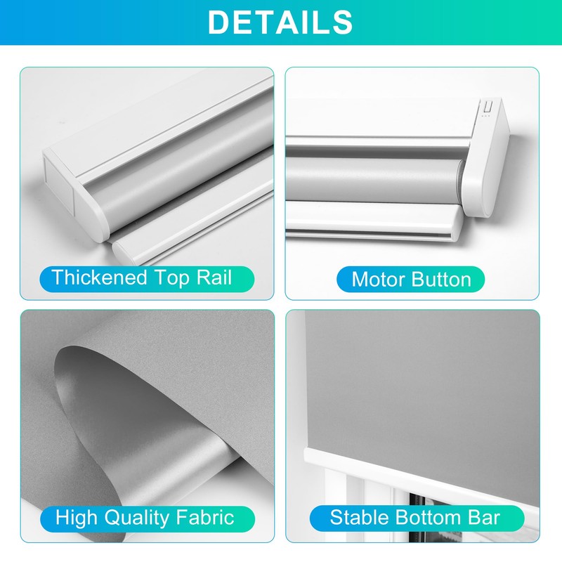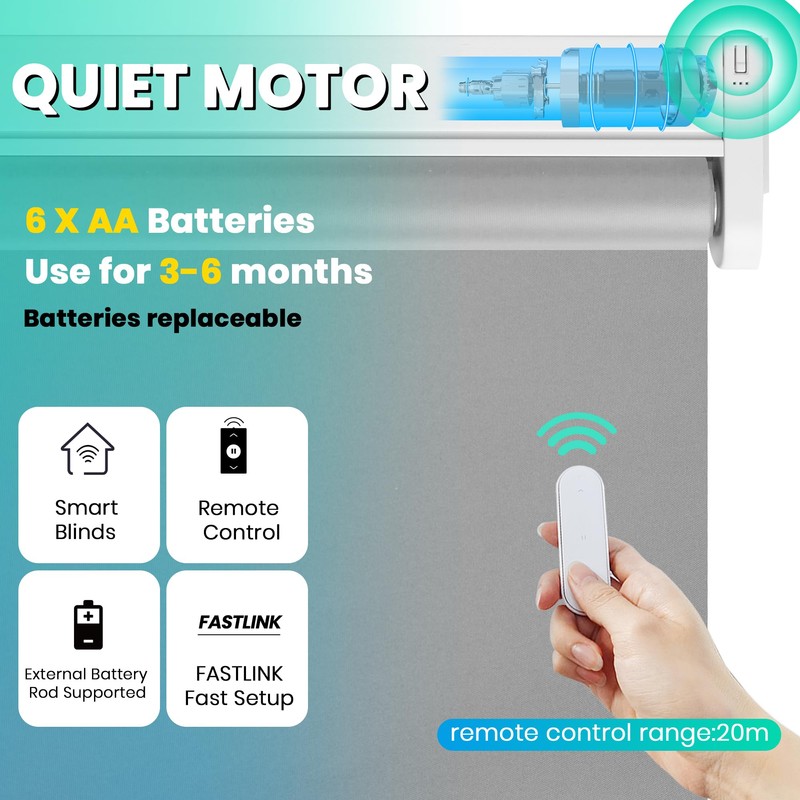 Allesin Motorized Roller Blinds with Remot Control for Windows, Blackout Smart Roller Shade, Battery Powered Electric Smart Blind (Grey,W34 x H72)