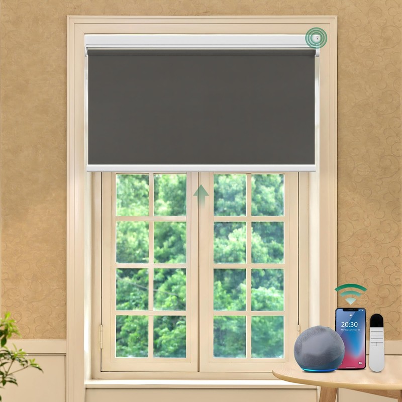 Allesin Motorized Roller Blinds with Remote Control for Windows, Blackout Smart Roller Shade, Battery Powered Electric Blind (Dark Gray 23" W x 72" H)
