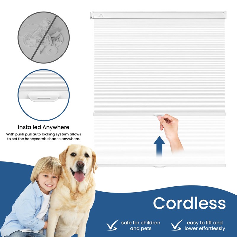 - 【Cordless & Free-Stop System】Push up or pull down, you can easily stop the shade at any position you like. The cordless design is more minimal and stylish, while also eliminating the risk of entanglement for children and pets