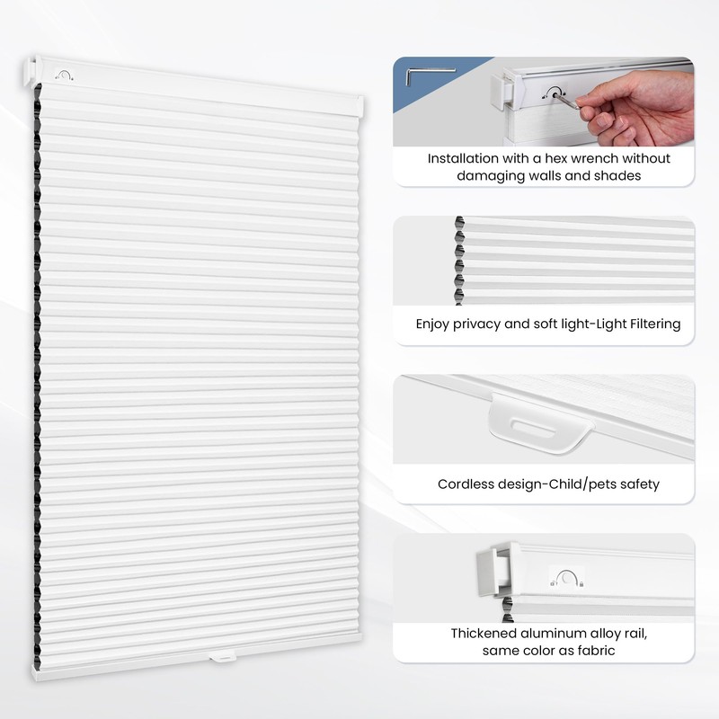 - 【100% Blackout】The honeycomb structure features a built-in aluminum foil layer that effectively blocks sunlight and UV rays, achieving true 100% blackout. Ideal for bedrooms, media rooms, and more