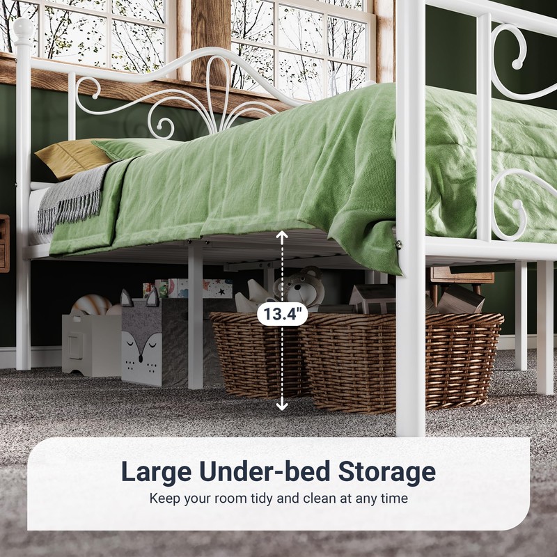 - AMPLE UNDERBED STORAGE: Metal slats extend the life of the mattress, and don't need to buy box springs. The high bed foot(13.4 inch) design frees up more space under the bed, which is good for us to store other items