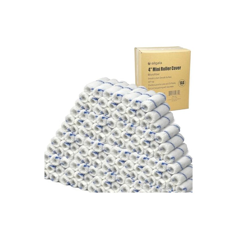 Allgala Mini Paint Roller 144 Bulk Pack 4 Inch Mini 3/8" Nap Shedless Microfiber Paint Roller Cover