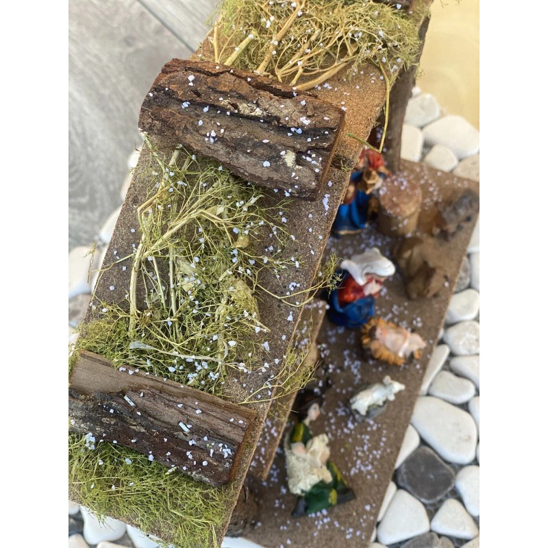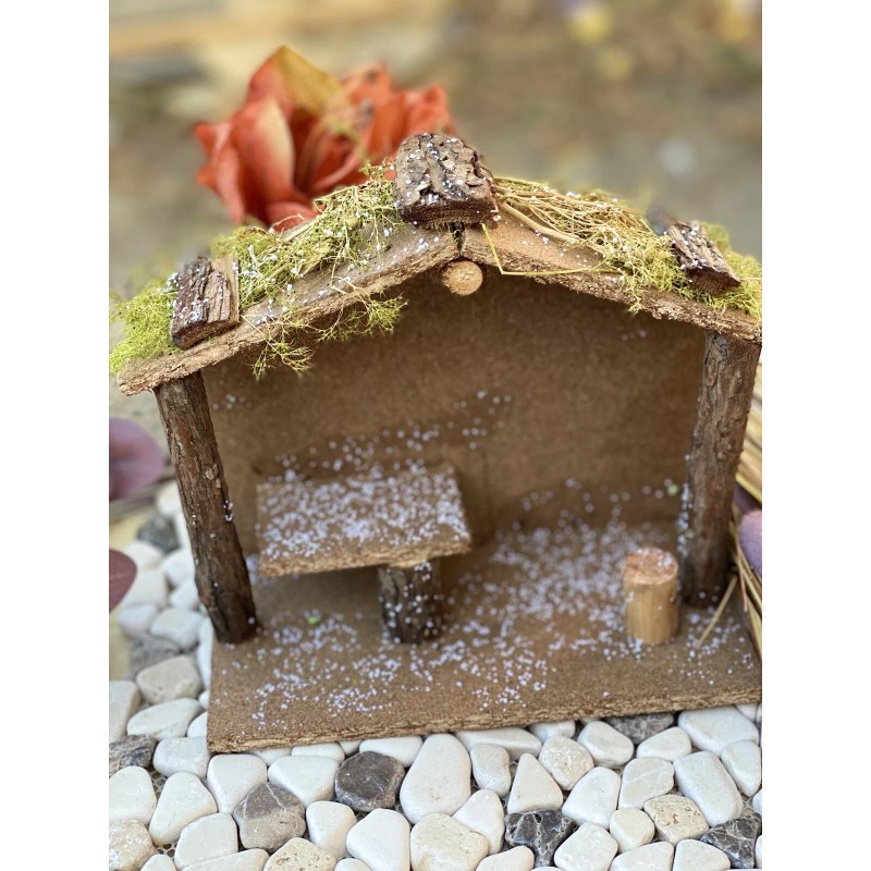 The stable measures 7.5”W x 6”H and most statuettes in the set measure about 3” high.
