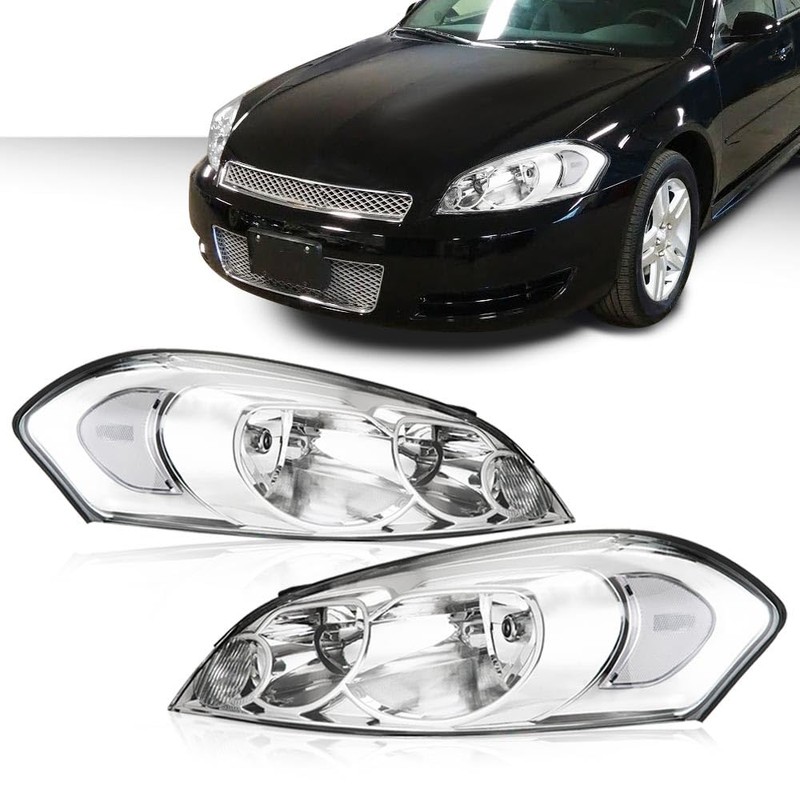 ALLGOOD Headlight Assembly Compatible with Chevy Impala 2006-2013/ Fit Impala Limited 2014-2016/ Fit Monte Carlo 2006-2007 Headlamp Chrome Housing Clear Lens white reflector