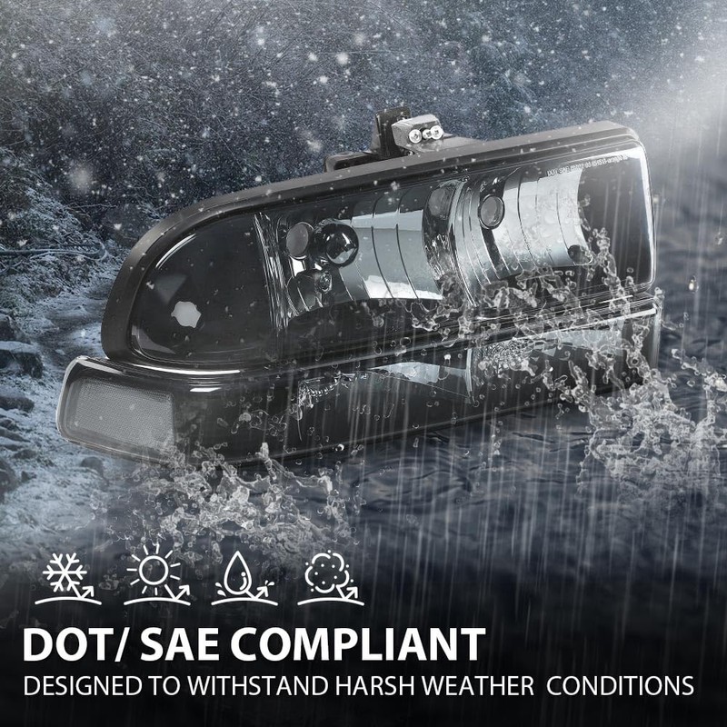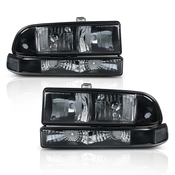 ALLGOOD Headlights & Bumper Turn Signal Light w/o Bulb Compatible with Chevy Blazer 1998-2005/Fit Chevy S10 Pickup 1998-2004 Left & Right Side Smoky Lens Black Housing Clear Reflector