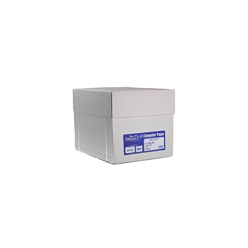 Alliance Continuous Computer Paper, 14 7/8 x 11, 1-Part, 92 Bright,18 lb, 1/2" Green Bar – 3,000 Sheets per Carton
