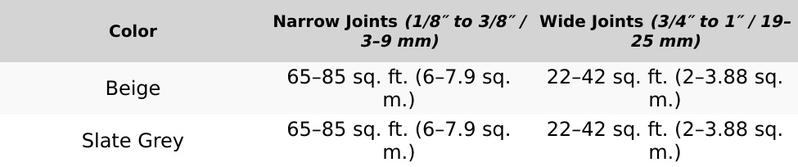 Note: Quantity required depends on the shape and size of the concrete pavers as well as the width of the joints.