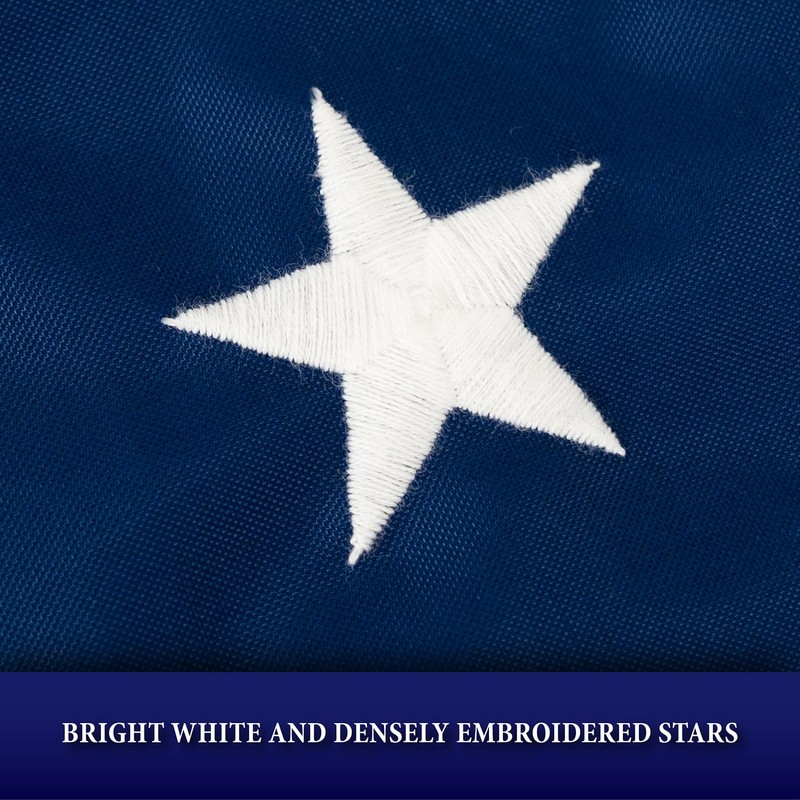 - Craftsmanship - no detail is overlooked when constructing your flag and you will immediately notice the Allied difference. The stripes of our flags are backstitched for strength, and the vivid white stars are densely embroidered for a true all-American flag that you will be proud to fly.